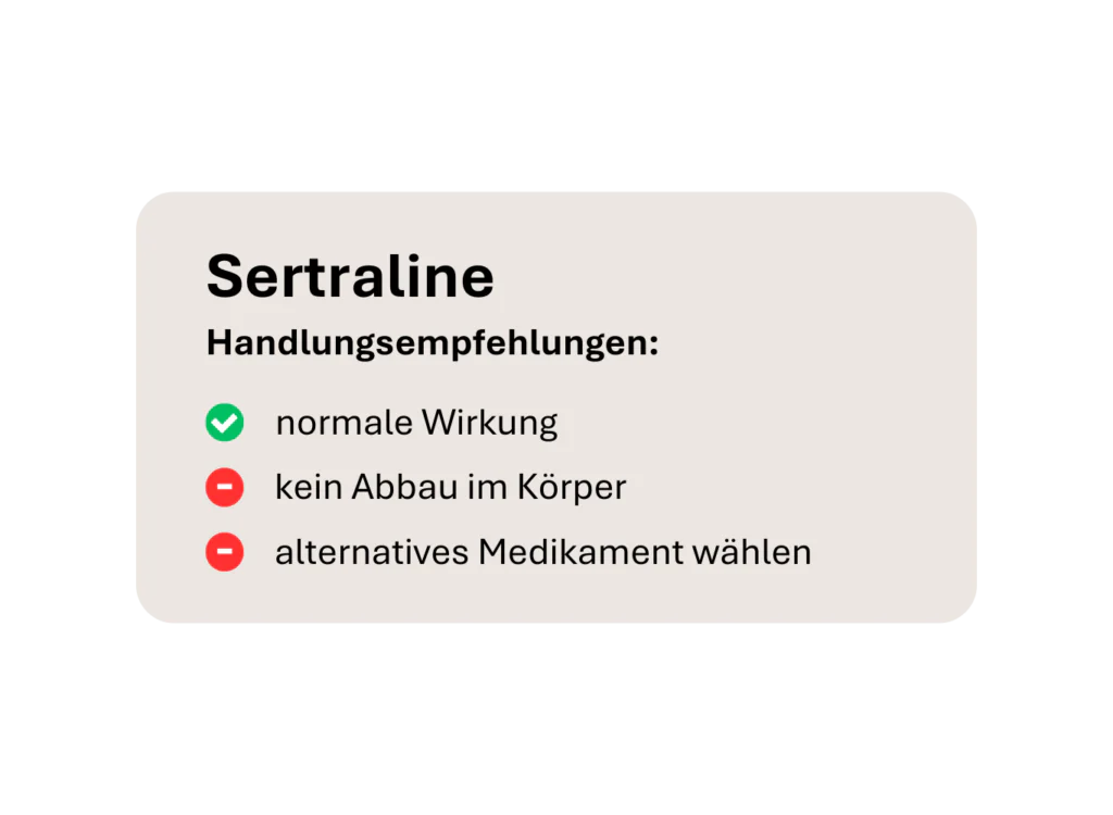 Auswertung von über 70 relevanten Genvariationen zur Bestimmung der genetisch bedingten Verträglichkeit von mehr als 800 Medikamentenwirkstoffen