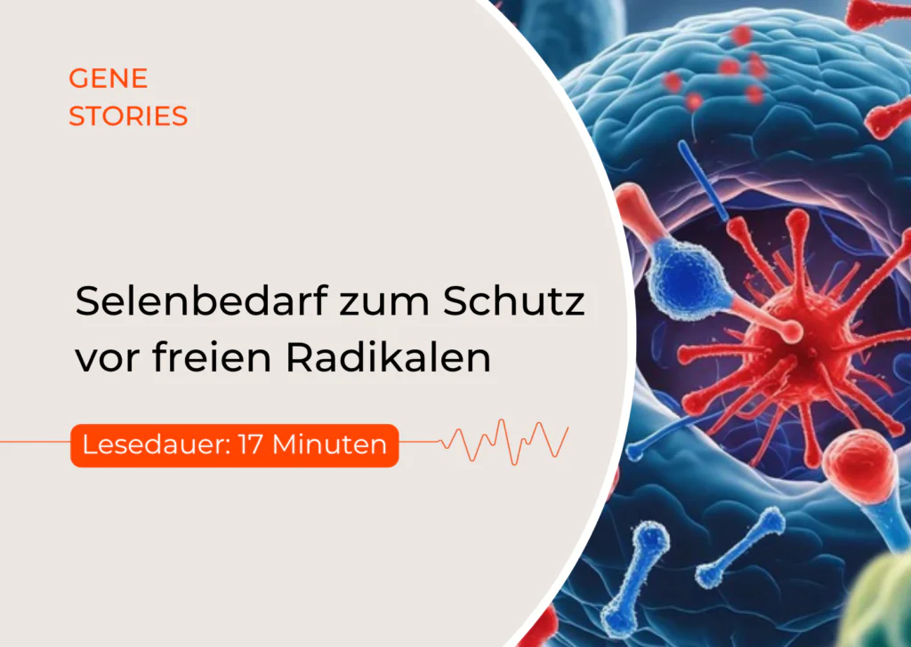 Das Enzym GPX1 ist selenabhängig – seine Aktivität hängt vom Einbau der Aminosäure Selenocystein ab. Genetische Varianten im GPX1-Gen (z. B. rs1050450) können dazu führen, dass das Enzym weniger wirksam arbeitet und dadurch ein erhöhter Selenbedarf entsteht, um die antioxidative Kapazität aufrechtzuerhalten.