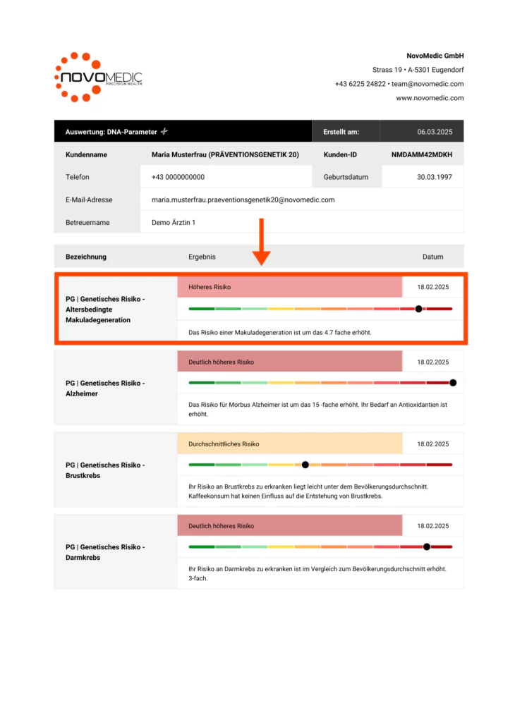 Der Arzt kann Ihre genetischen Ergebnisse mit Ihrer Gesundheitsgeschichte und Ihrem Lebensstil in Verbindung setzen. Nur so können die richtigen Maßnahmen abgeleitet werden