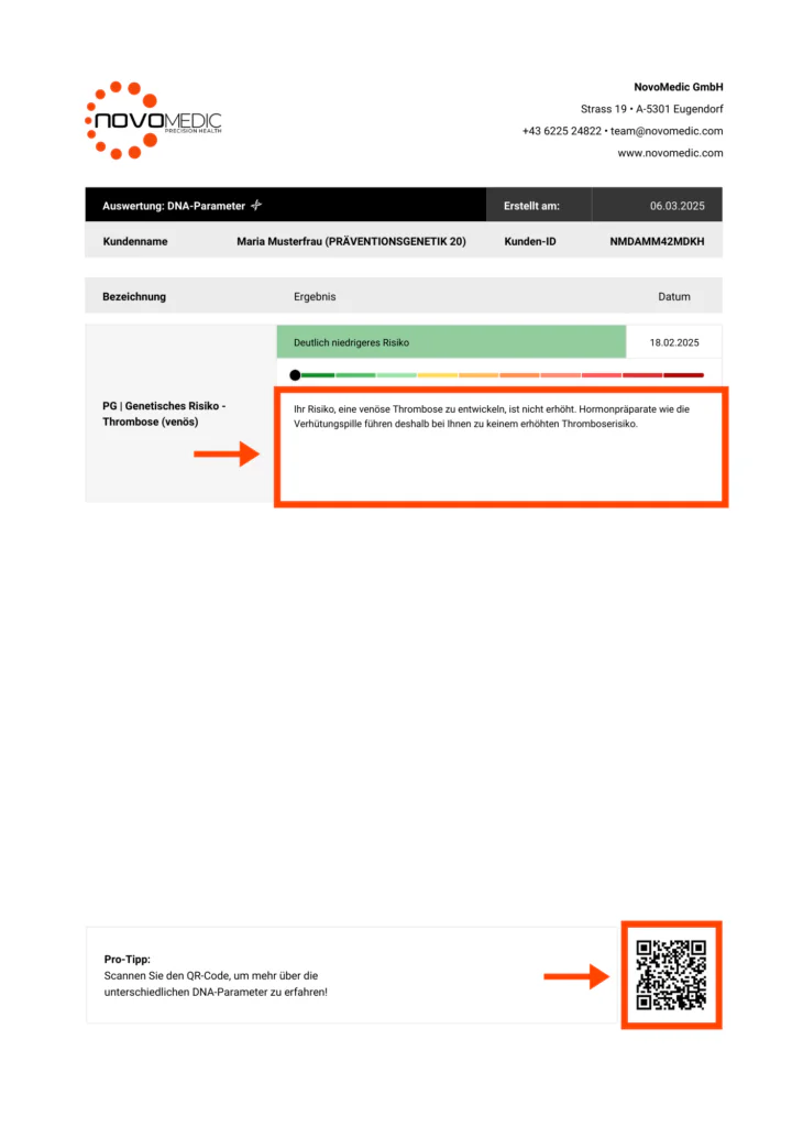 Die Ergebnisse Ihrer DNA-Analyse sind ein wertvoller Ausgangspunkt, doch sie ersetzen keine ärztliche Beratung. Sie beleuchten Ihre individuelle Veranlagung, sind aber keineswegs als Diagnose zu betrachten. Wie stark sich ein genetisches Risiko tatsächlich auf Ihre Gesundheit auswirkt, hängt von vielen weiteren Faktoren ab, wie Ihrem Lebensstil, Ihrer Ernährung oder bereits bestehenden Erkrankungen.