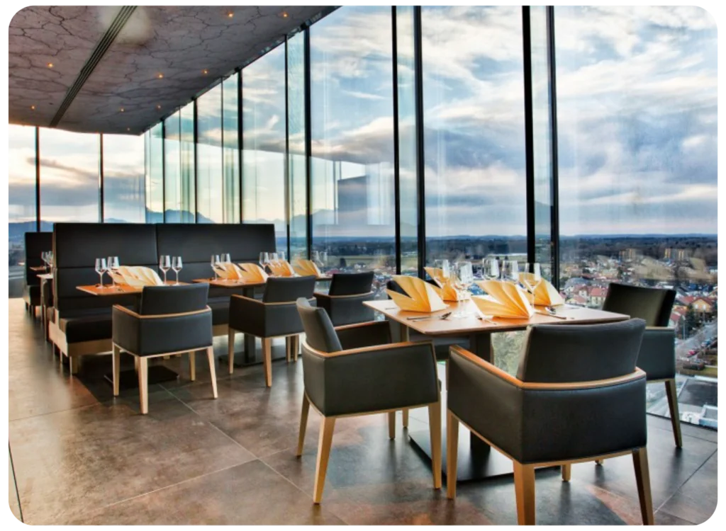 Gesellschaftsabend mit 3-Gänge-Menü und Weinbegleitung bei tollem Panorama über Salzburg.