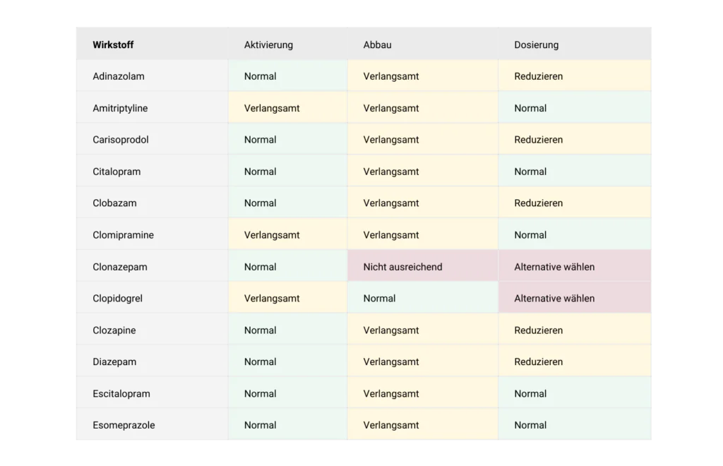 Alle anderen Medikamentenwirkstoffe, die nicht von den untersuchten genetischen Varianten beeinflusst werden, gelten als „neutral“ und erfordern keine Anpassung.